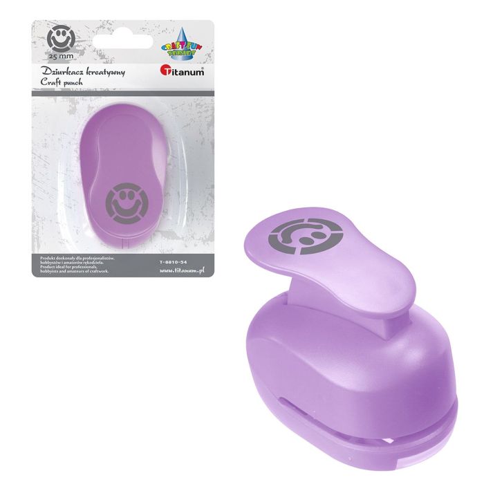 Dziurkacz z ozdobnym motywem. Posiada wbudowany pojemnik na wycięte elementy. Wycięty motyw nadaje się do dalszego wykorzystania. Doskonały do dekorowania zaproszeń, kartek okolicznościowych, kopert, zakładek do książek, albumów, pamiętników czy karnetów. Niezastąpiony w scrapbookingu i cardmakingu. Wzór: buźka. Rozmiar wzoru: 25 mm.