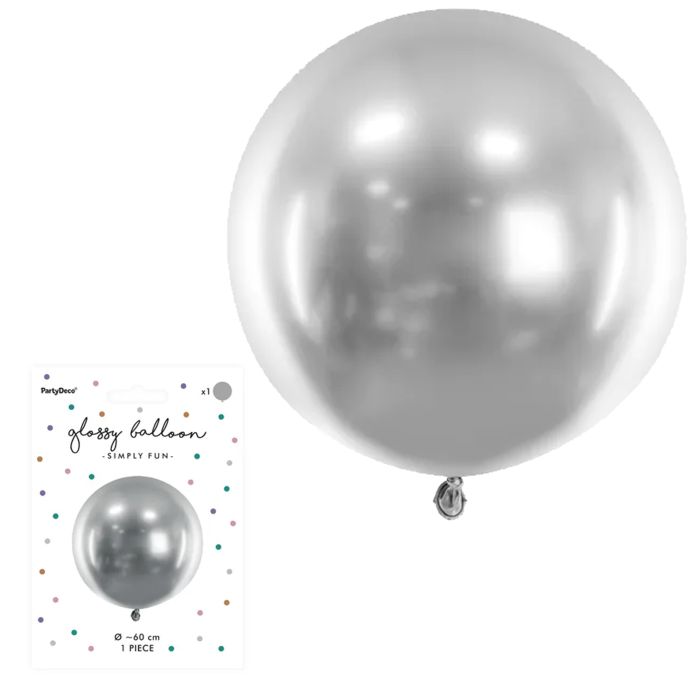 BALON OKRĄGŁY GLOSSY 60CM SREBRNY PARTYDECO