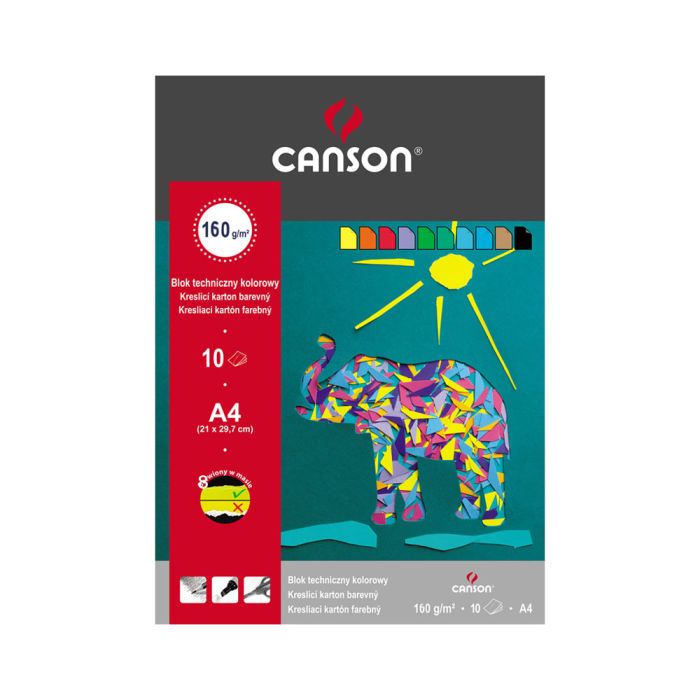BLOK TECHNICZNY KOLOROWY A4 160G 10 KARTEK SŁOŃ