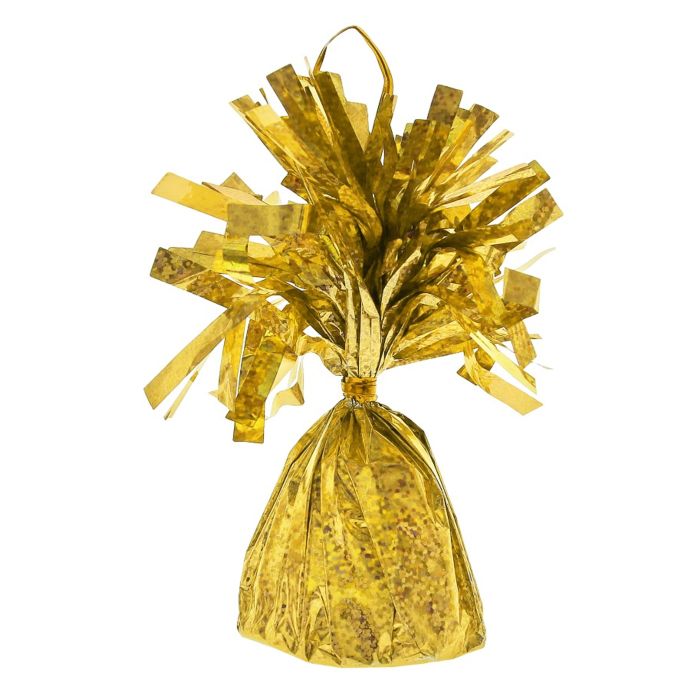Ciężarek do balonów w kształcie stożka, złoty. Obciążnik znajduje się w dekoracyjnej folii o holograficznym połysku. Złoty obciążnik do balonów to idealny wybór przy tworzeniu dekoracji balonowych na ślub, wesele, urodziny i wiele innych okazji. Ciężarek do balonów jest przede wszystkim przeznaczony do balonów na hel, ale jego zastosowanie może być dużo większe. Wysokość: 12 cm Waga: 145 g Kolor: złoty