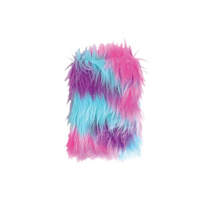 Notatnik pluszowy posiada miłe futerko w kolorze różowo-fioletowo-niebieskim z mieniącymi się włosami.