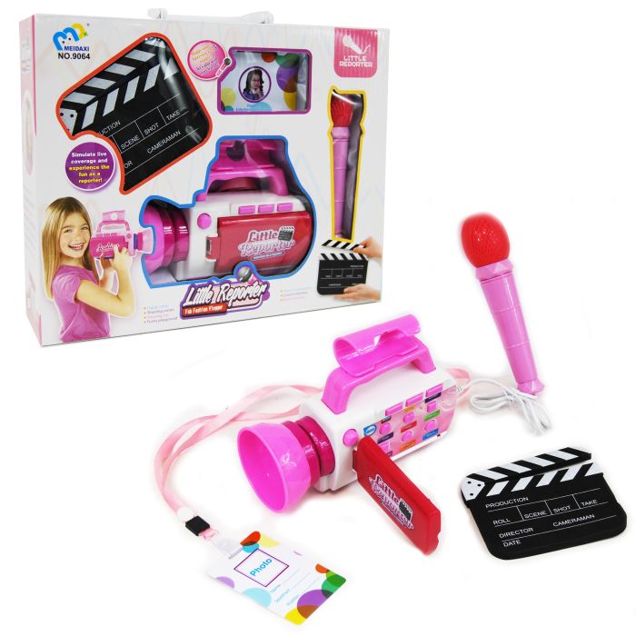 Zestaw Małego reportera z kamerą cyfrową i mikrofonem ze światełkami i dźwiękami sprawi wielką radość podczas wspaniałej zabawy w operatora kamery, reportera lub dziennikarza.